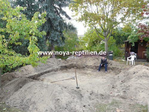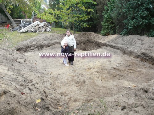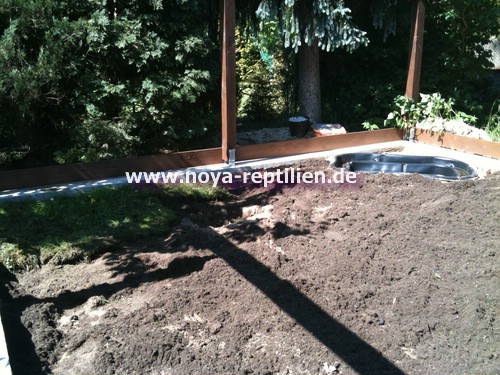 Der letzte Rest Erde landete dann noch im Gehege. Wir bauten noch einen kleinen Teich (250 Liter) ein.