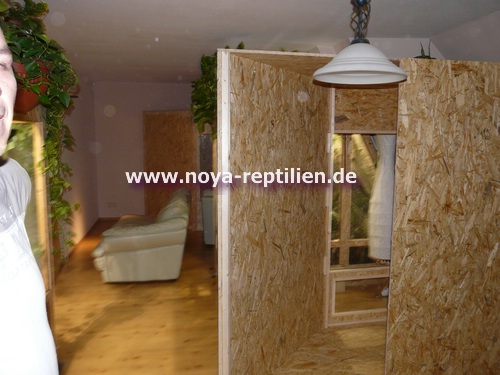 So war es notwendig beim Aufbau des zweiten Terrariums die Couch und den Couchtisch in die Flure zu räumen.