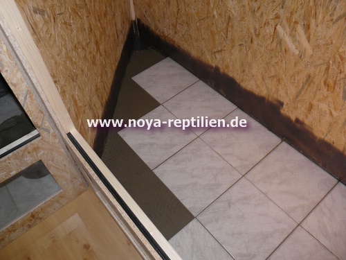 Nachdem das gut getrocknet war, musste ich die Böden und einen schmalen Rand an den Seitenwänden fliesen.