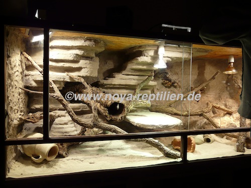 Wir halten unsere Gruppe in einem Trockenterrarium mit den oben angegebenen Maßen. Über die Größe lässt sich viel diskutieren. Das wollen wir hier nicht. Dazu können wir nur einschlägige Seiten und Foren empfehlen. Wir möchten auch keine Mindestgröße hier vorschlagen.