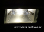 Des Weiteren sollte man seine Strahler gut aussuchen. Es gibt Hängestrahler und Einbaustrahler. Beide haben aus meiner Sicht Vor- und Nachteile. Hängestrahler haben ein integriertes Vorschaltgerät, was man nicht extra dazu kaufen muss. Der Strahler hängt im Terrarium, wodurch er seine gesamte Wärme in dieses abgibt. Der Nachteil dabei ist, dass die Tiere an die Strahler heran kommen und sich verbrennen können. Ein weiterer Nachteil sind aus meiner Sicht die oft schlechten Reflektoren in den Strahlern. Die besten Reflektoren sind die rechteckigen. Diese habe ich bisher nur in Einbaustrahlern gefunden. Dies und der schon angesprochene Nachteil (Verbrennungen) der Hängestrahler haben mich veranlasst, in all unseren Terrarien die Einbaustrahler zu benutzen.